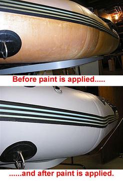 The use and application of flexible paint to hypalon and rubber variant inflatable boats and rib s.